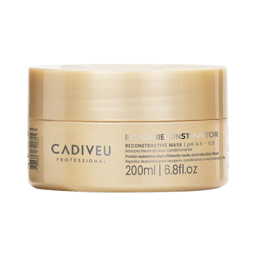 Cadiveu Blonde Reconstructor Reconstructive Mask 200ml with slightly acidic and low molecular weight proteins that efficiently restructures fiber starting at the cortex all the way through the cuticles, bringing your hair back to its natural, healthy state reversing years of damage and reinforcing hair resistance against new damage.