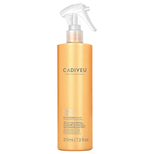 Cadiveu Nutri Glow Nourishing Fluid 215ml with exclusive technology that combines the most powerful kinds of butter and oils to offer the maximum load of nourishment to rescue dry, malnourished, and dull hair, its light texture does not weigh on the hair, it promotes movement, softness, and a silky touch. It keeps the hair disciplined, facilitates blow-drying, and protects against frizz for 72 hours, shielding hair against up to 85% humidity for up to 48 hours. With heat protection up to 230C. For perfect styling.